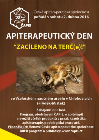 Česká apiterapeutická spoločnosť (ČAPIS) pripravuje v sobotu 2. apríla 2016 vo Včelárskom náučnom areáli v Chlebovicích (Frýdek - Místek) zaujímavé podujatie zamerané na odbornú propagáciu apiterapie. Bohatý program sľubuje nielen predstavenie ČAPIS, ale aj informácie a kazuistiky o praktickom využití včelích produktov. viac...